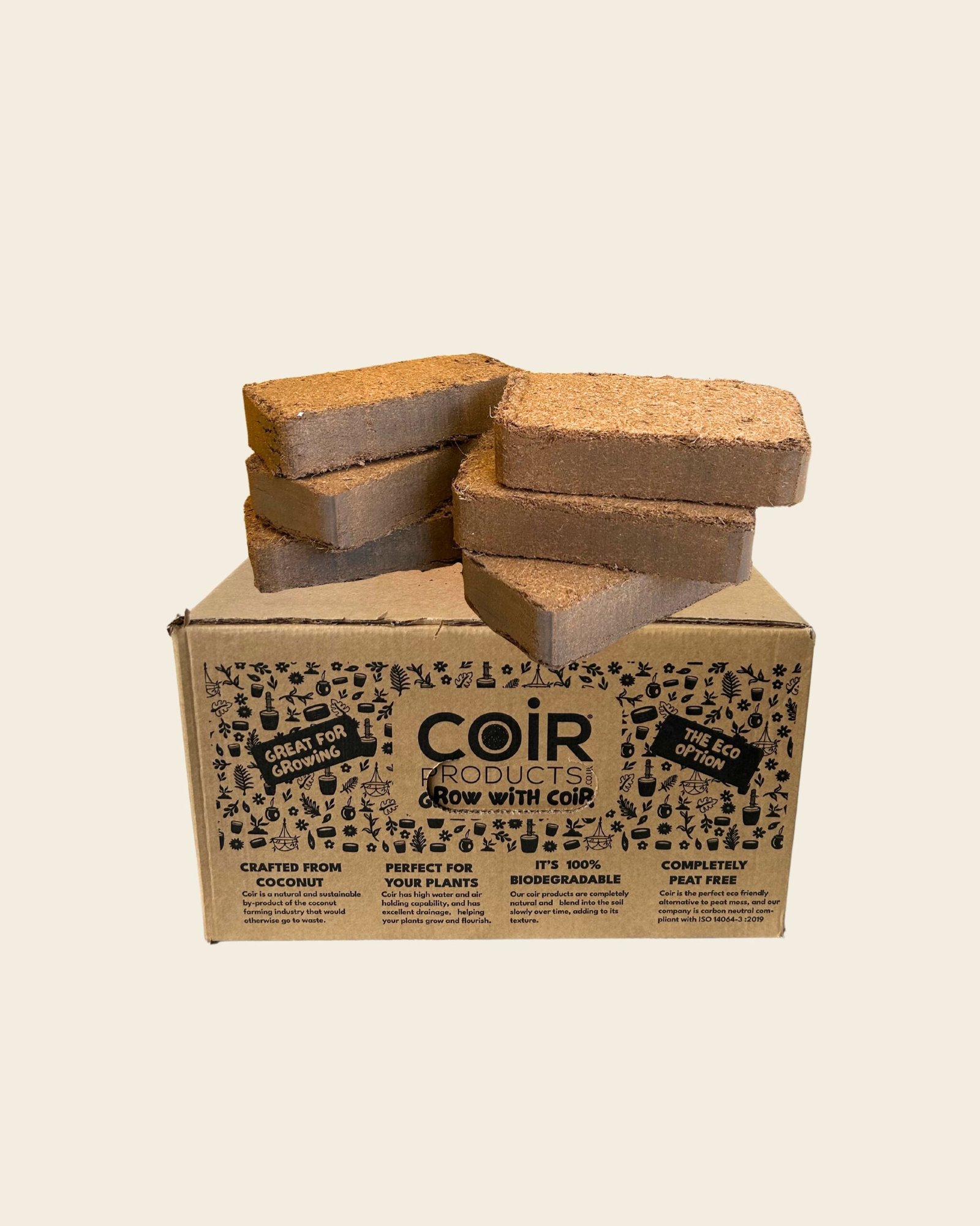 Due to the natural characteristics of coir, all measurements and expansion figures are intended as a guide and may vary slightly. Packaging may appear as shown, or may be supplied in shrink wrap or an alternative box format to ensure fast, safe, and efficient delivery.